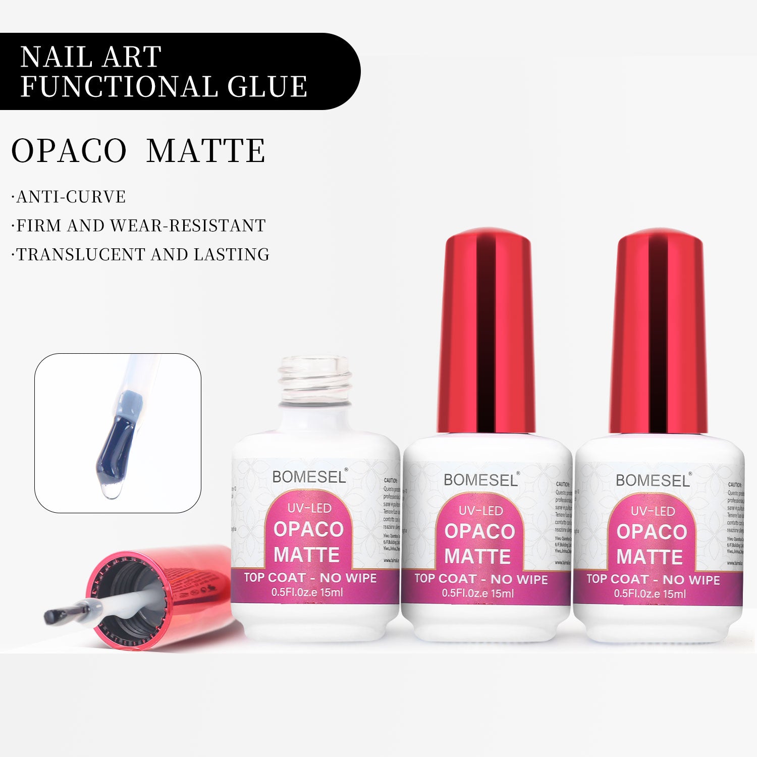 15ml Non Toxic UV LED Top Coat Gel Polish Opaco Matte Top Coat for Nail Salon
